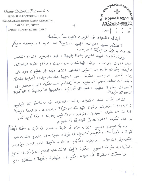 I congratulate you for the Glorious Feast of the Resurrection, wishing you all that the Lord returns it upon you with all goodness and blessing.