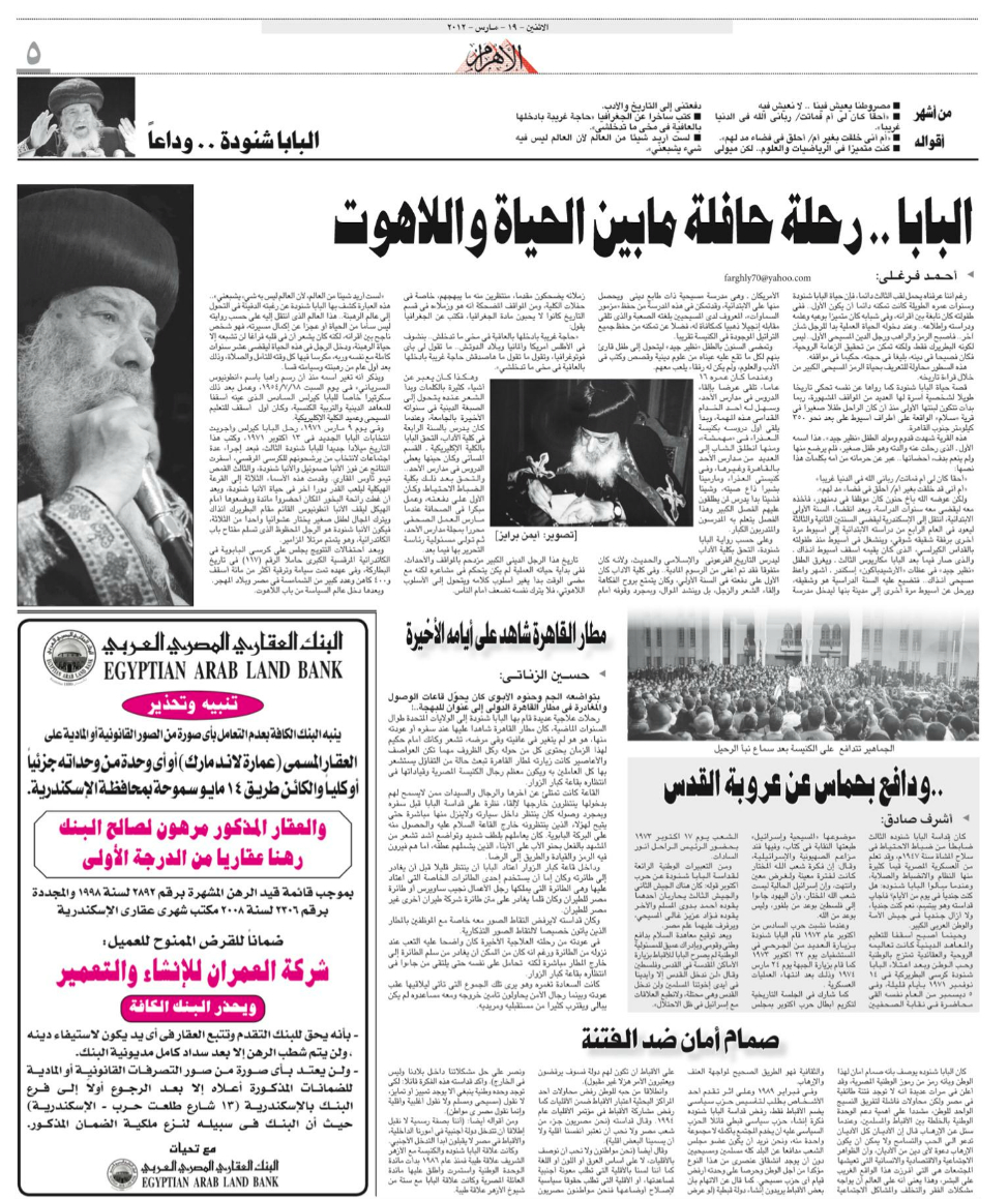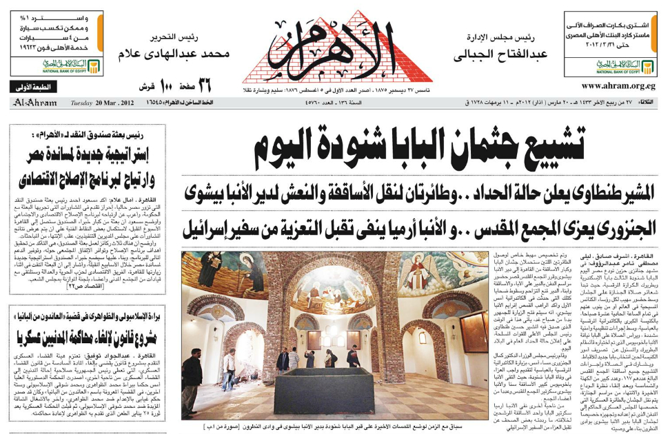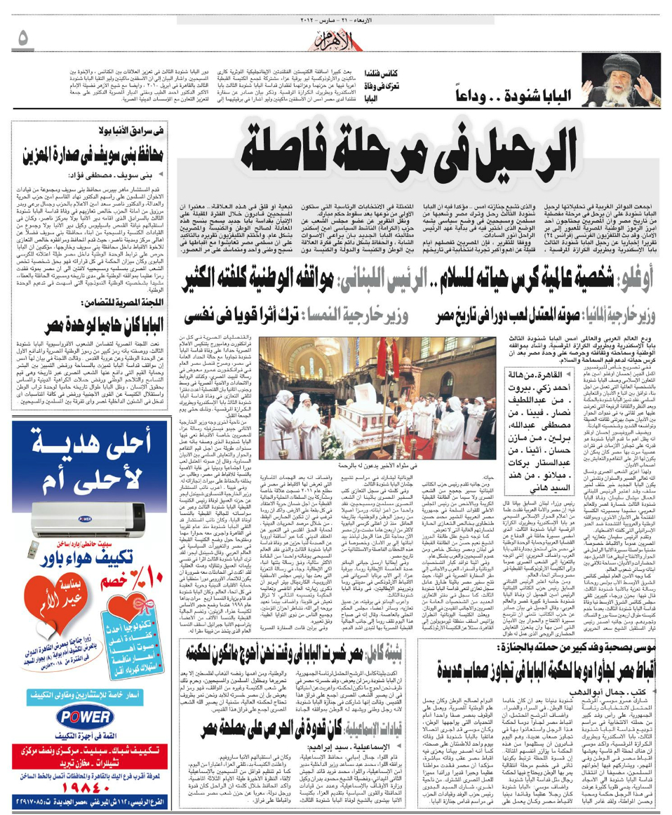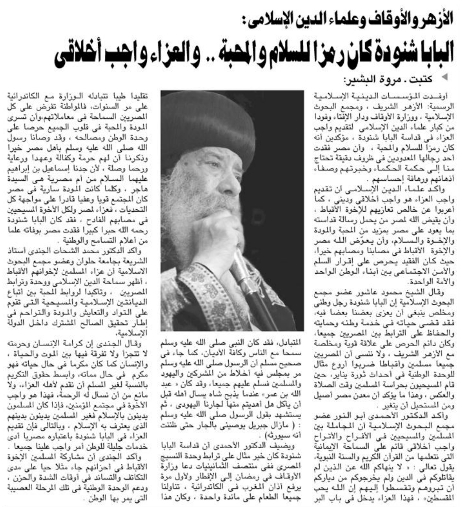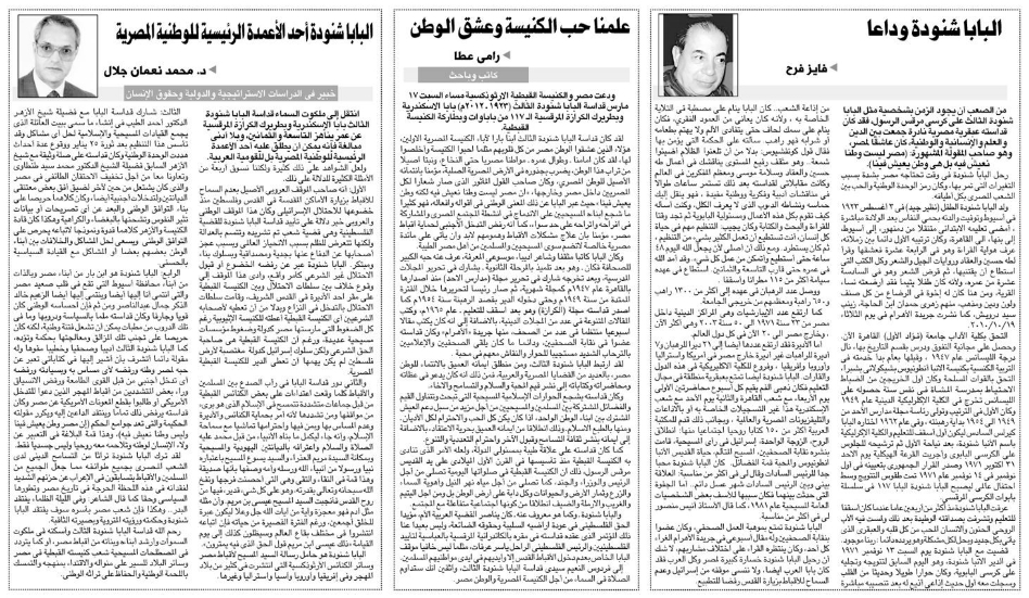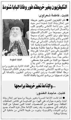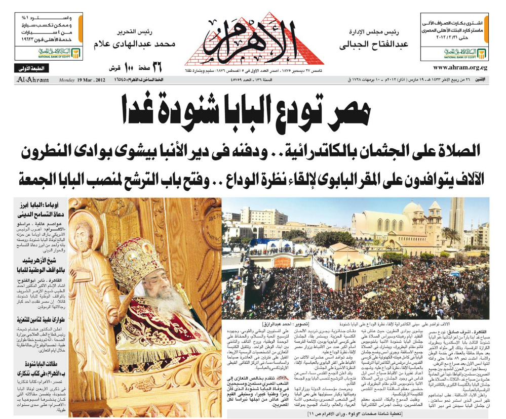 Pope Shenouda III Departure in Egypt Newspapers