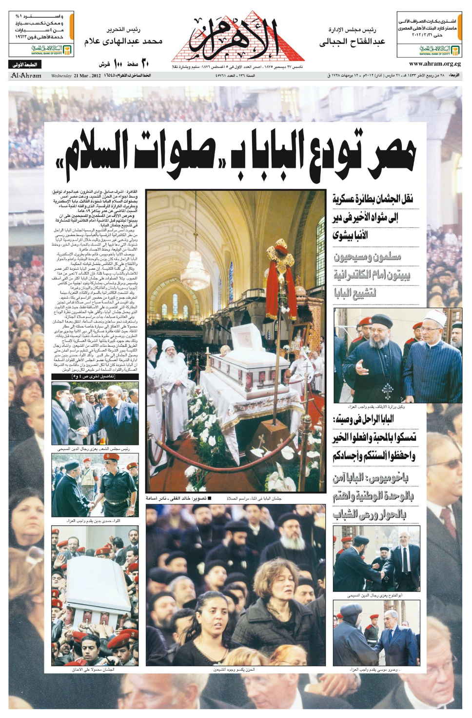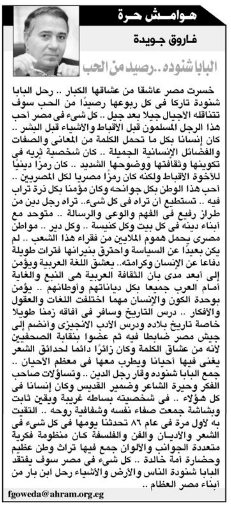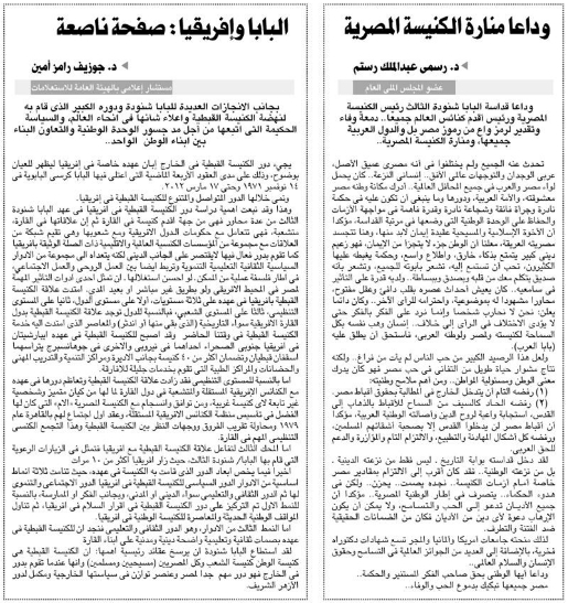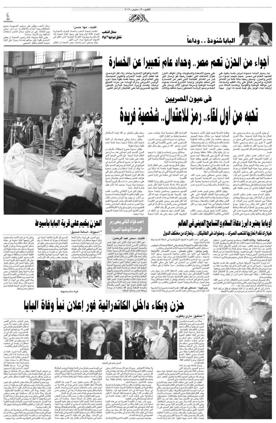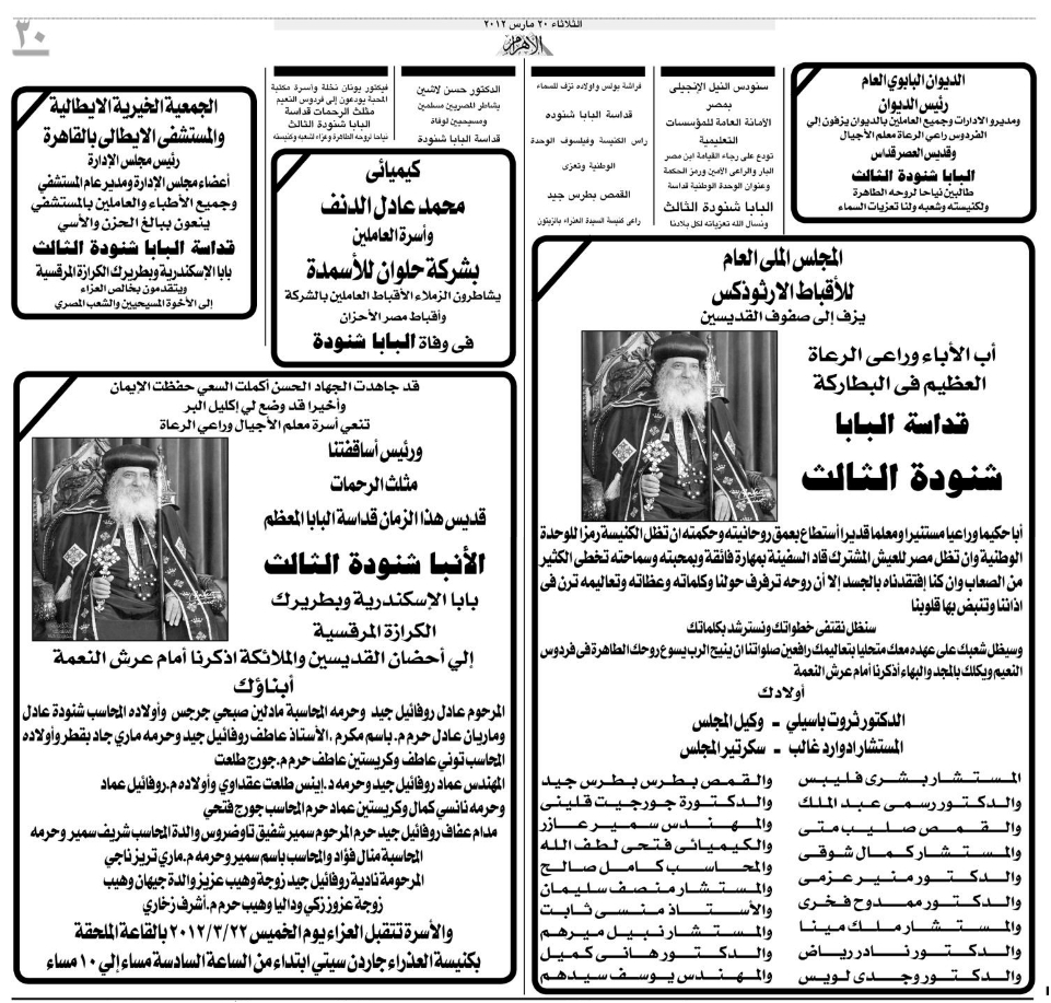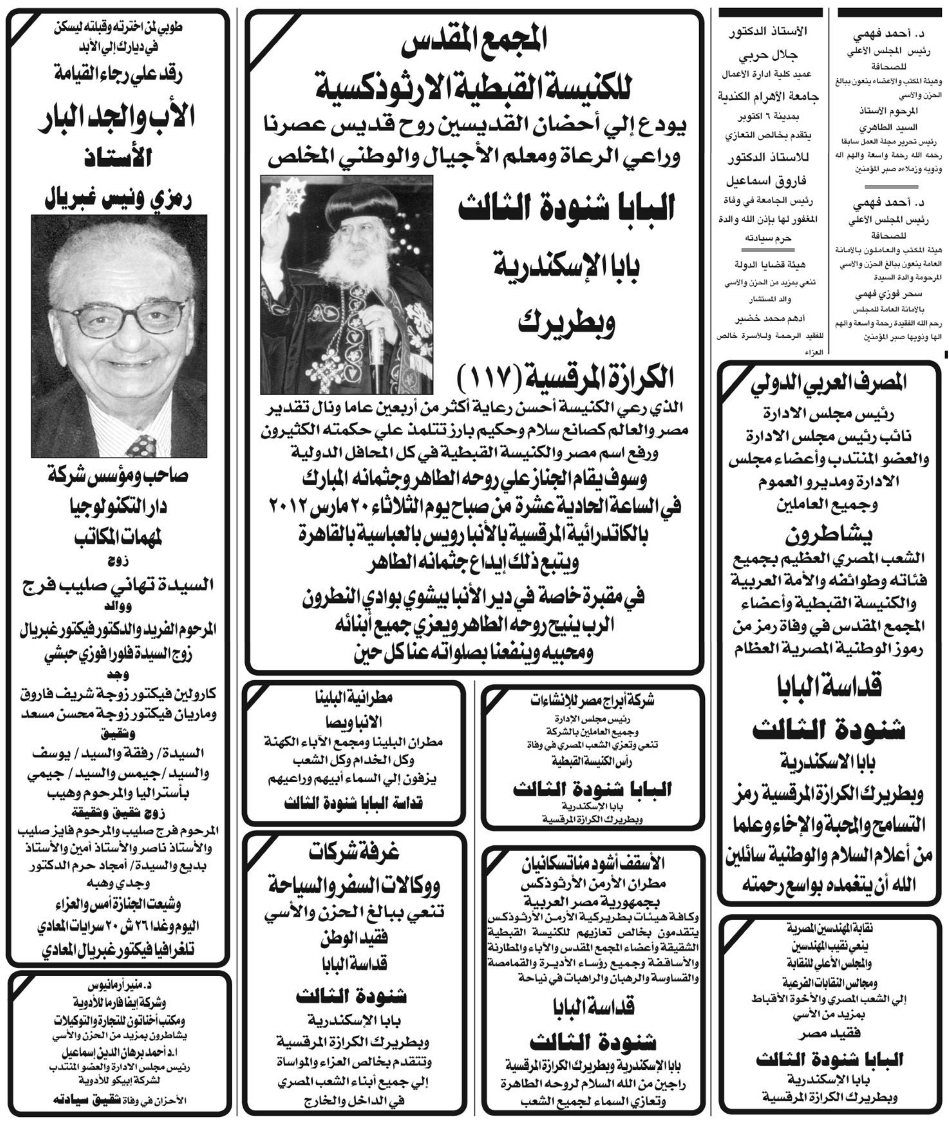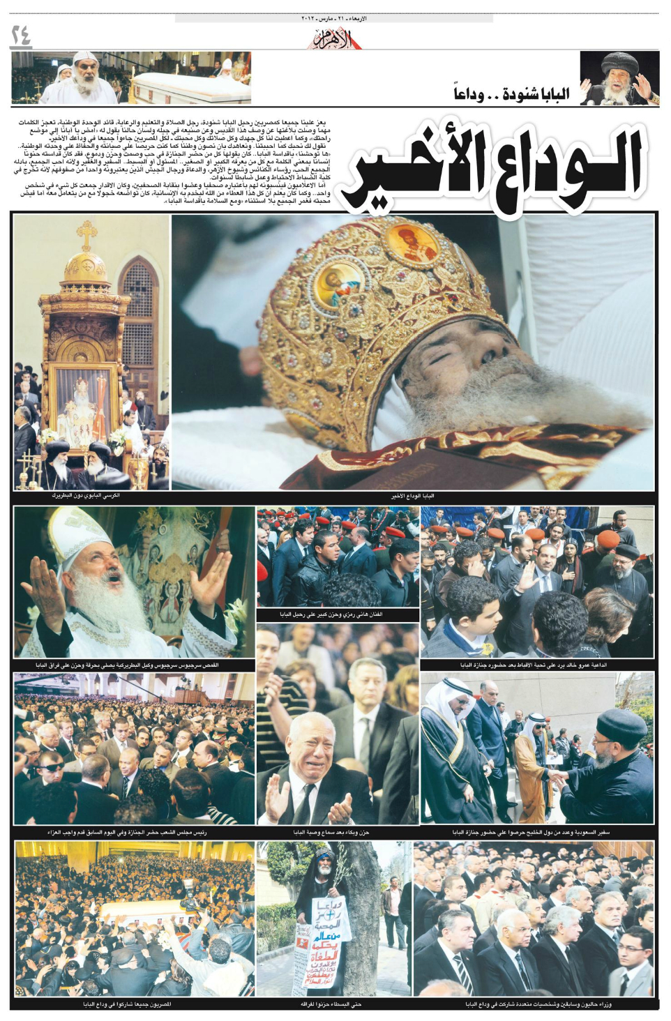 Pope Shenouda III Departure in Egypt Newspapers