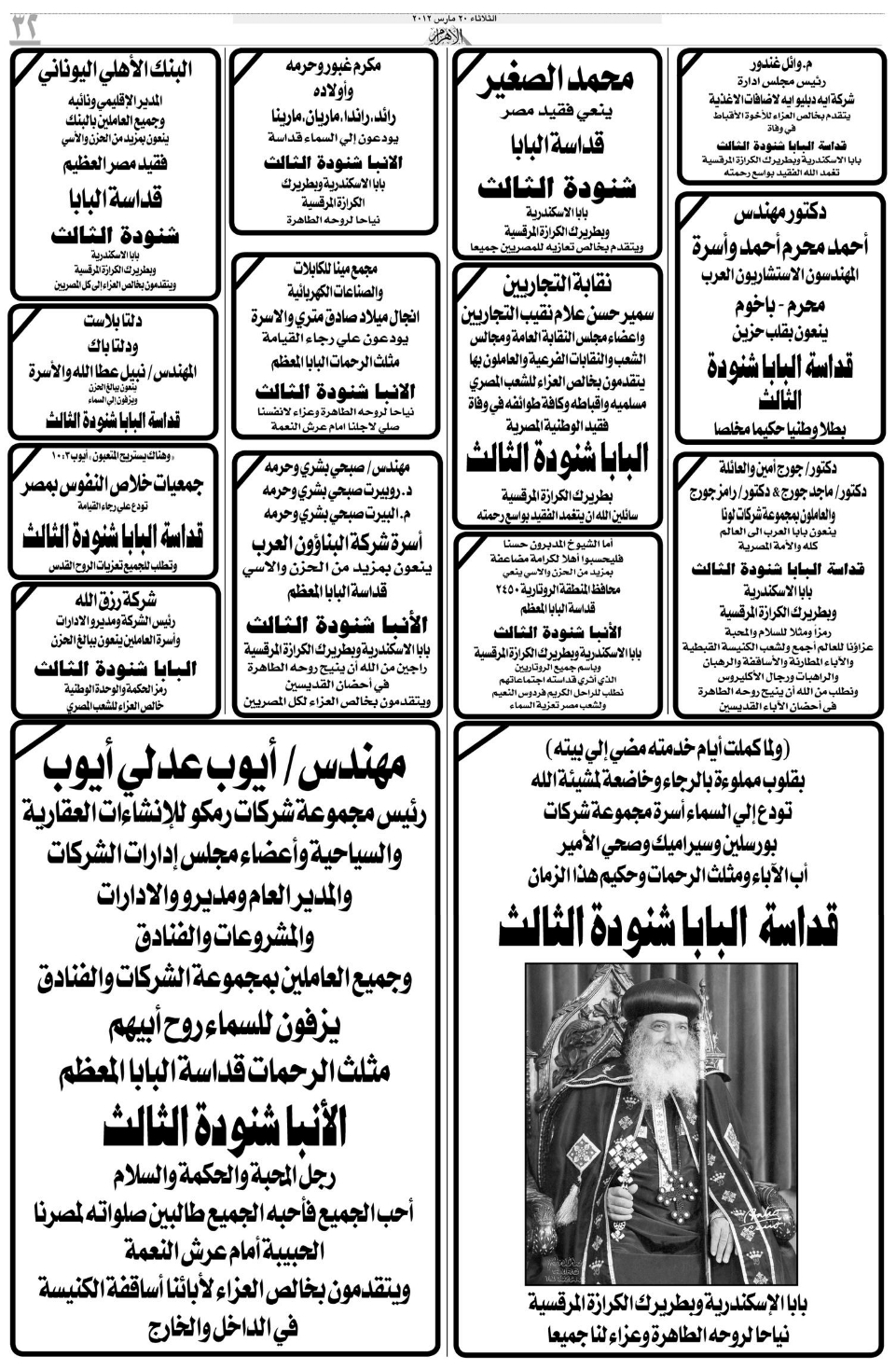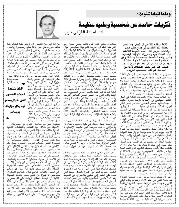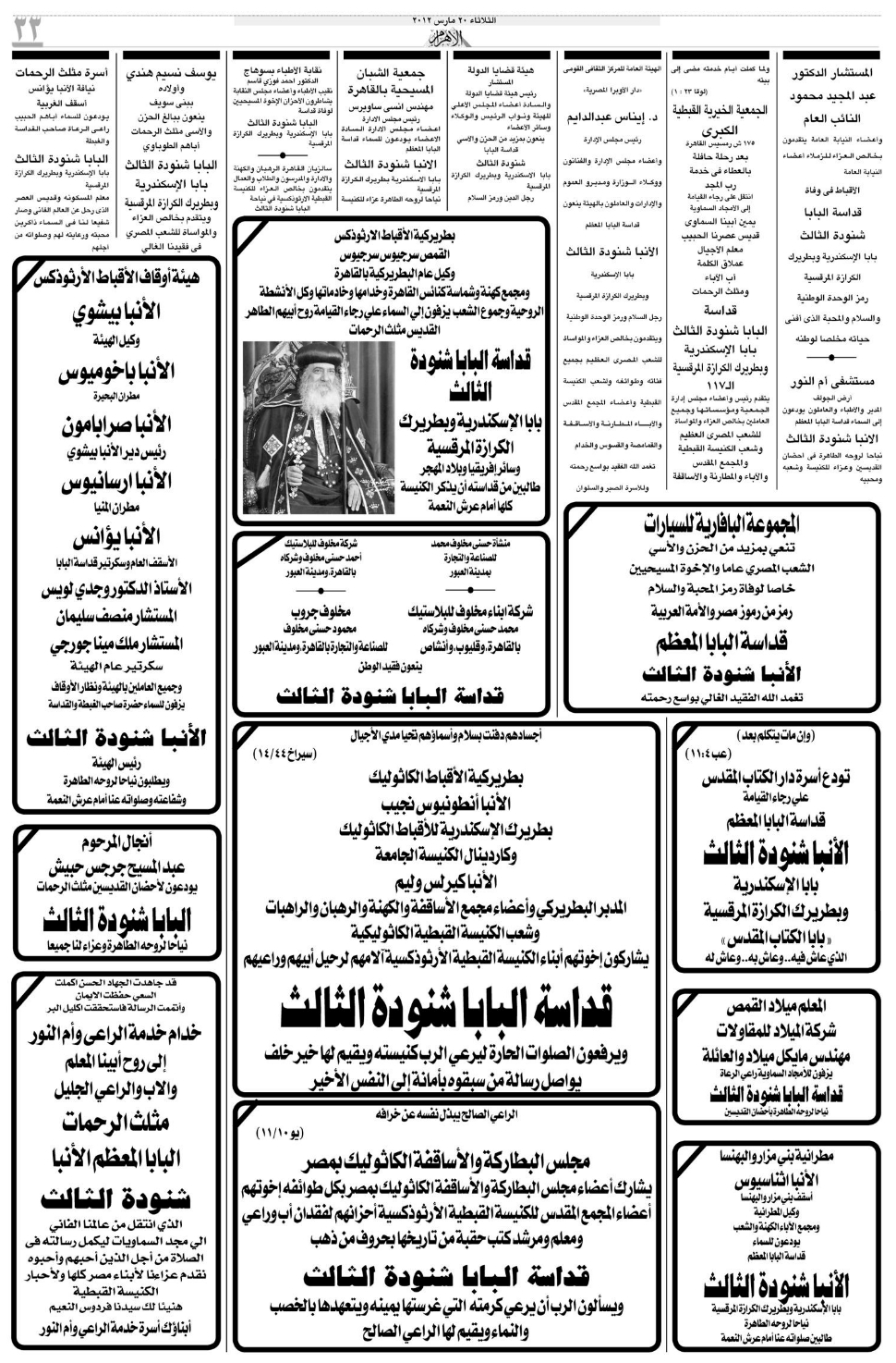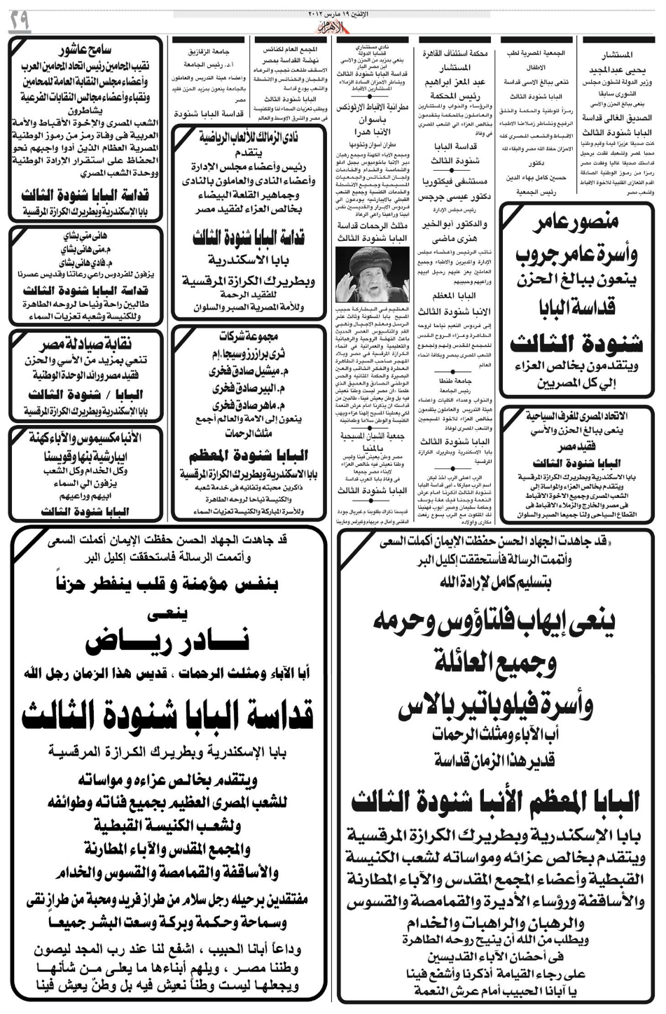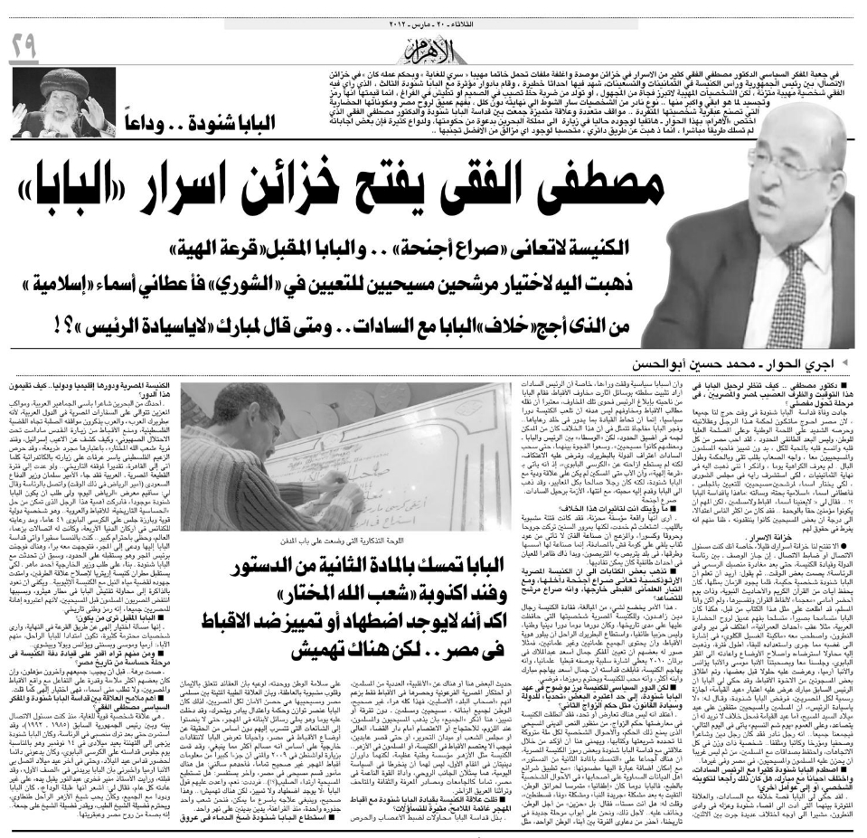 Pope Shenouda III Departure in Egypt Newspapers