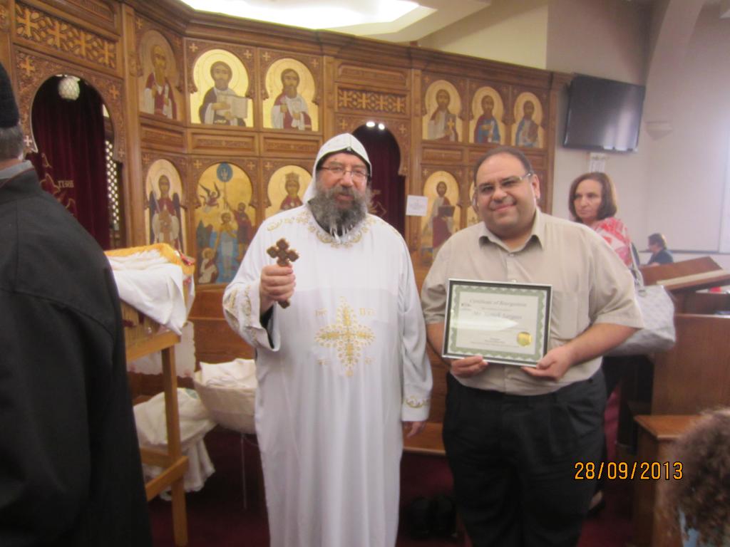 The winner is our beloved servant, Sameh Sargeos, from our lovely church: Saint Mina’s Coptic Orthodox Church in Hamilton, Ontario. The prize is $500 and a Certificate of Appreciation and Recognition from the Diocese. The winner was contacted personally and a meeting with His Grace Bishop Mina will be scheduled soon.