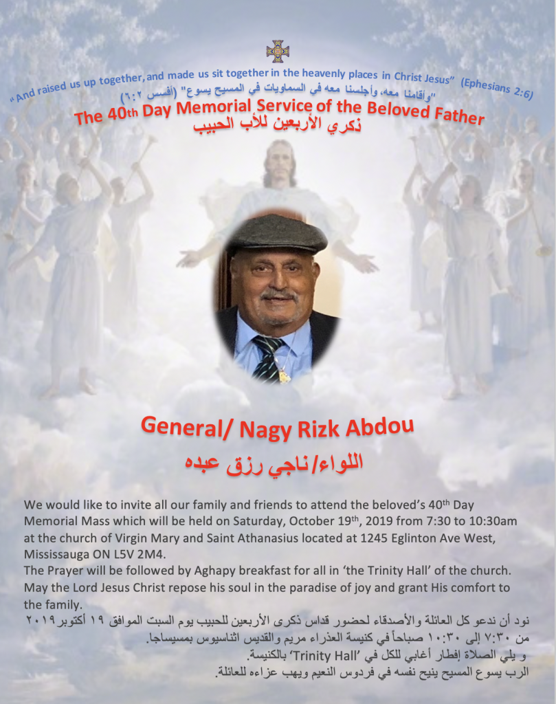40th Day Memorial Mass of Mr. Nagy Abdou (Father of Mr. Amir Abdou)![]() |